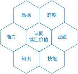 錦江堅持德才兼備,以德為先;不唯學歷憑能力,崇尚一技之長的人才選拔機制,既賽馬又相馬,關注業績兼顧潛力;大膽提拔有思想、敢擔當、會創新的人才。加盟錦江的員工必須認同錦江價值,只有認同感才有歸屬感,才是錦江人